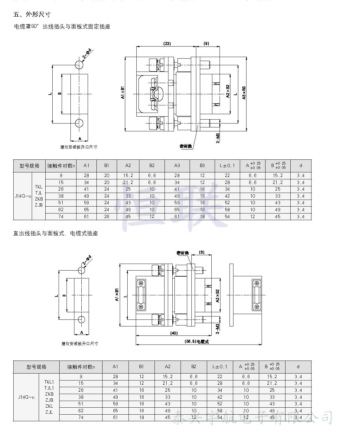 產(chǎn)品型號:J14Q系列矩形電連接器