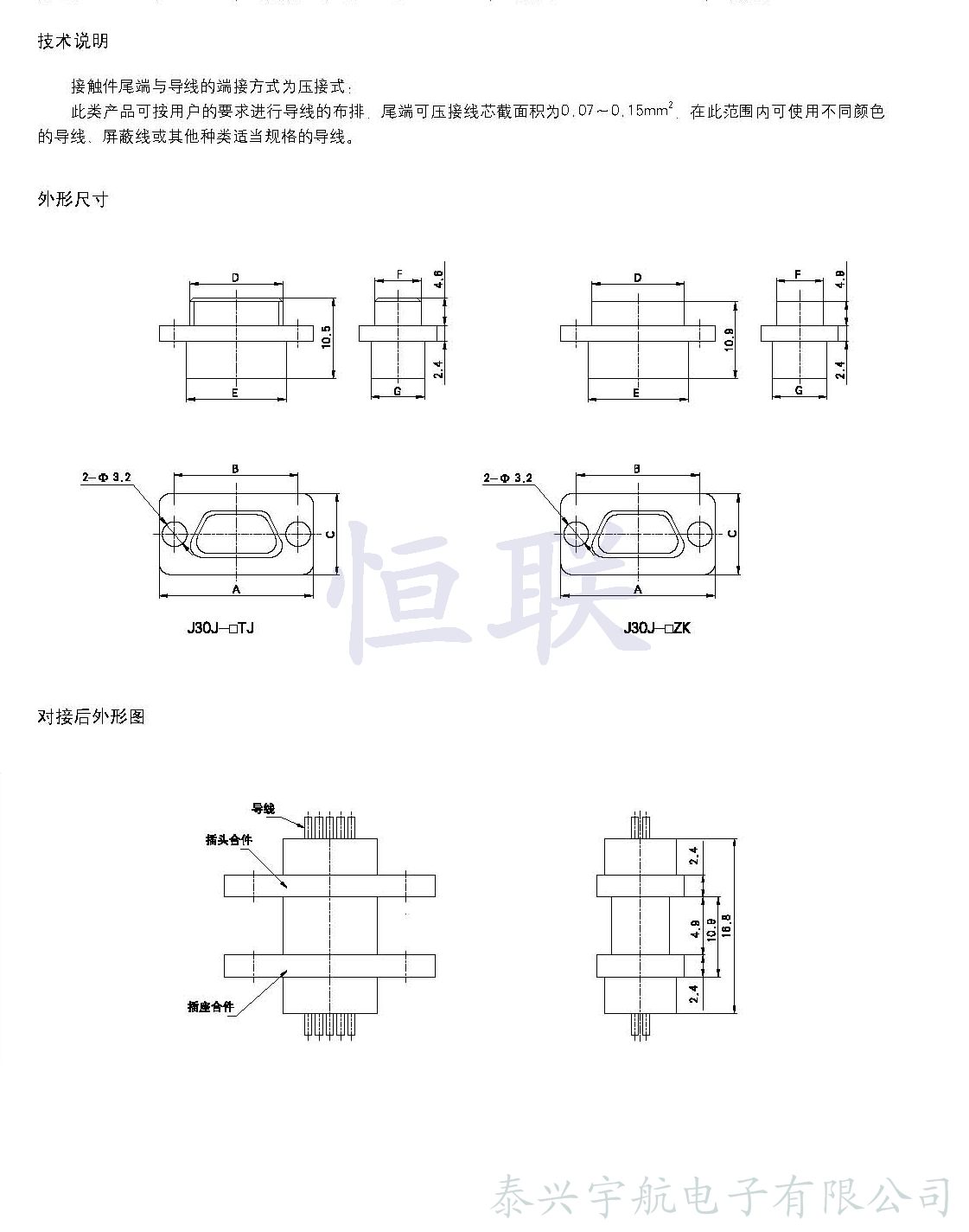 產(chǎn)品特點簡介  ? 接觸件尾端與導(dǎo)線的端接方式為壓接式;  ? 此類產(chǎn)品可按用戶的要求進行導(dǎo)線的布排,尾端可壓接線芯截面積為0.07~0.15mm2,在此范 圍內(nèi)可使用不同顏色的導(dǎo)線、屏蔽線或其他種類適當規(guī)格的的導(dǎo)線。