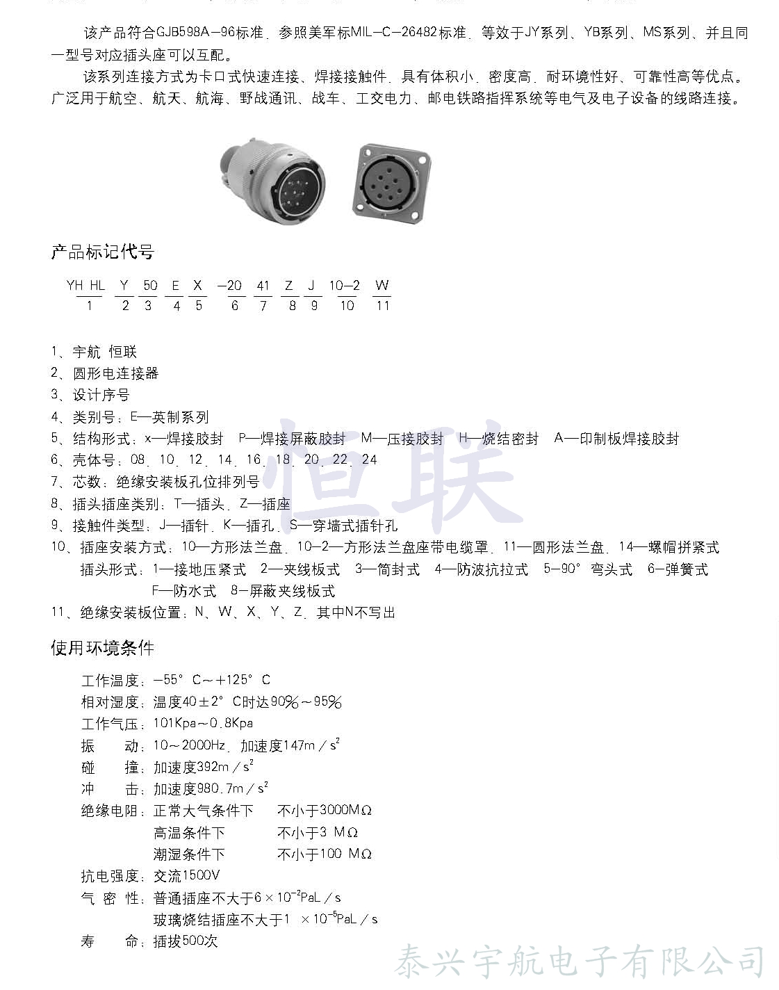 英制電連接器,符合國軍標GJB598A-96 (MIL-C-26482)標準,采用內卡口鎖緊形式, 插座密封,有多種安裝方式,插頭有多種出線 形式。